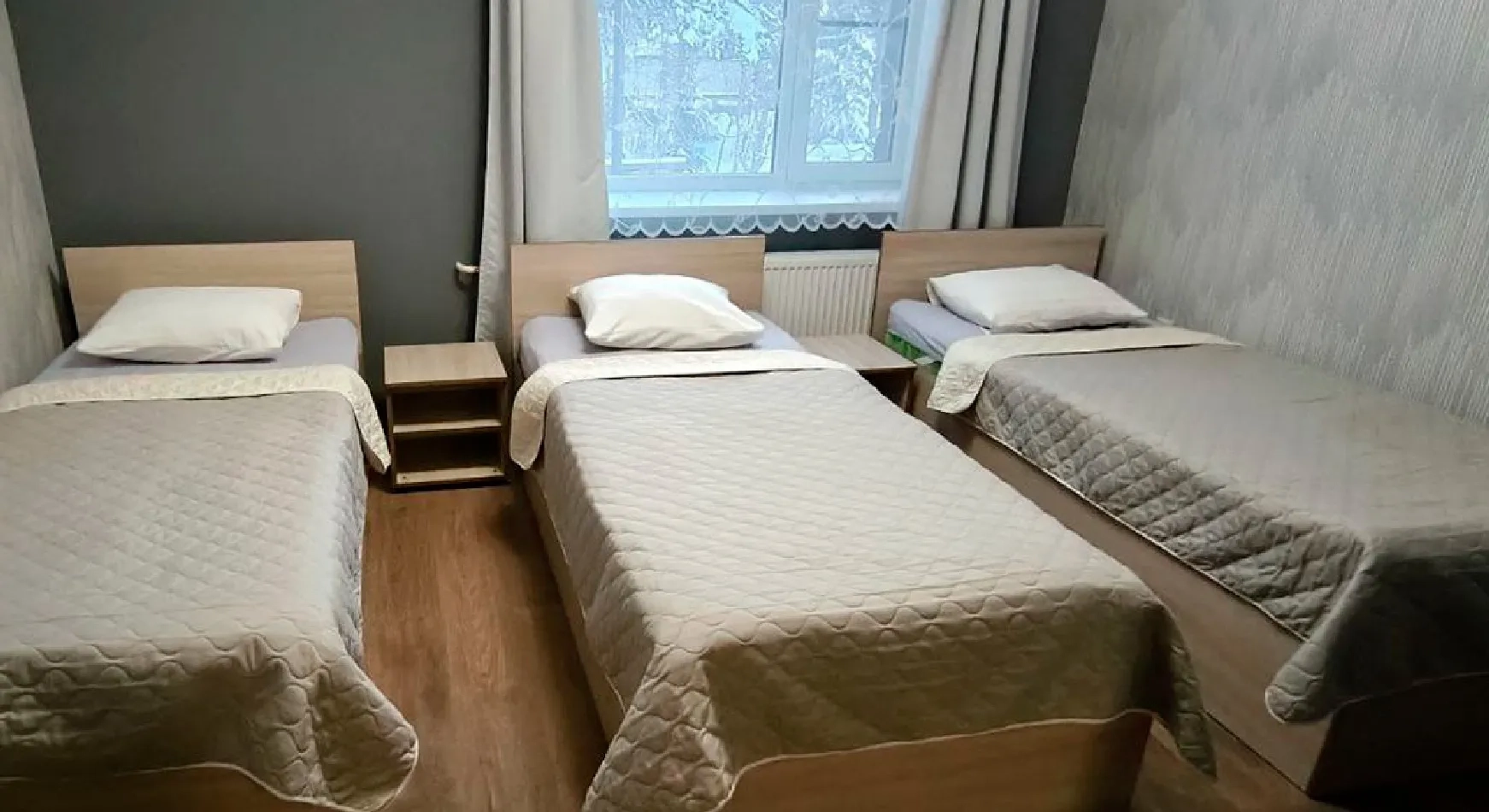 три удобные односпальные кровати для полноценного отдыха;